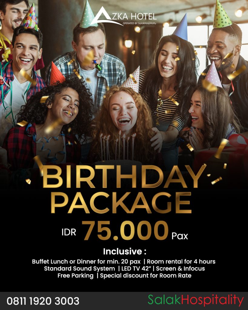 “Melalui Birthday Package ini, kami ingin memberikan kemudahan bagi masyarakat yang ingin merayakan ulang tahun tanpa repot mengurus detail teknis acara,” ujar Pak Burhan, manager Azka Hotel. “Dengan harga yang kompetitif dan fasilitas lengkap, tamu cukup datang dan menikmati momen kebersamaan, sementara tim kami siap membantu memastikan acara berjalan lancar dan menyenangkan.”