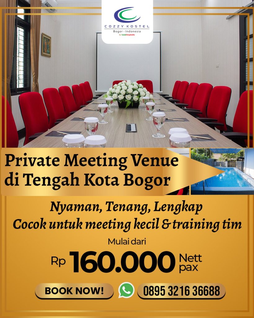 “Paket meeting ini kami hadirkan untuk menjawab kebutuhan ruang rapat yang privat, tenang, dan profesional di pusat Kota Bogor. Cozzy Kostel menawarkan suasana homey namun tetap berkelas, sehingga peserta dapat fokus dan produktif selama kegiatan berlangsung,”