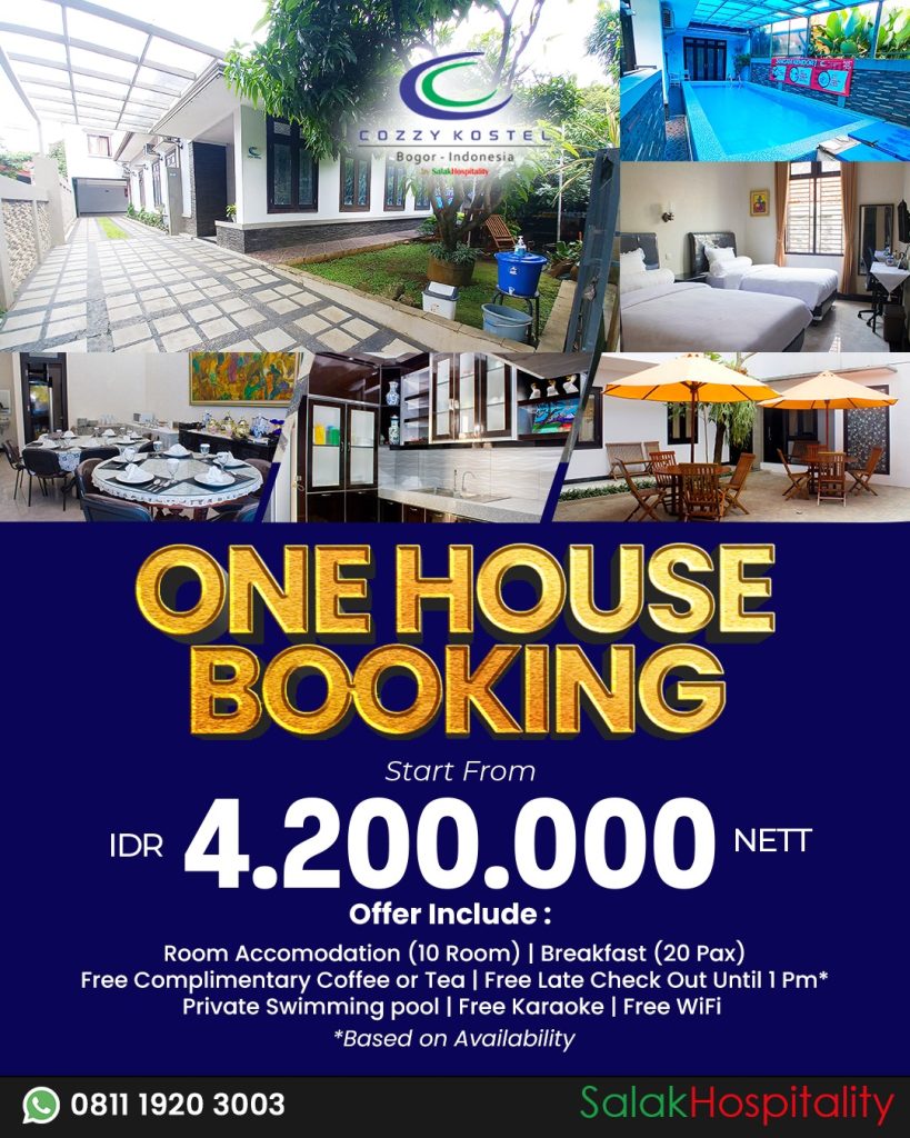 Informasi lebih lanjut dan reservasi Paket One House Booking dapat dilakukan melalui Corporate Contact di 0811-1920-3003 atau dengan mengunjungi situs resmi www.salakhospitality.com.