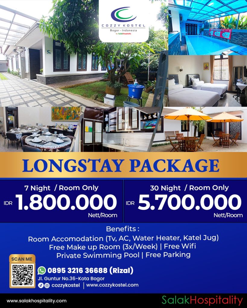 “Paket longstay ini kami hadirkan untuk tamu yang membutuhkan hunian jangka panjang dengan harga terjangkau namun tetap mengutamakan kenyamanan dan ketenangan. Cozzy Kostel ingin menjadi rumah kedua bagi tamu yang tinggal sementara di Bogor,” ujar Rizal, Manager Cozzy Kostel.