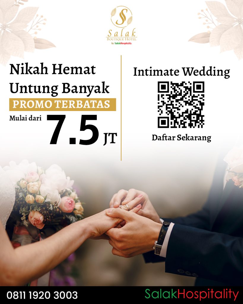 Untuk informasi lebih lanjut dan pemesanan paket wedding dari Salak Boutique Hotel Managed by Salak Hospitality, silakan menghubungi Corporate Contact: 0811 1920 3003 atau kunjungi website resmi www.salakhospitality.com.