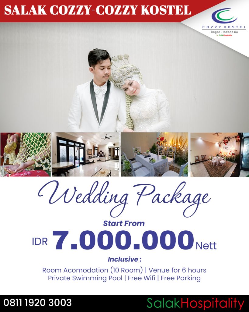 Sebagai bagian dari Salak Hospitality—pengelola Hotel Salak The Heritage Bogor yang telah dikenal luas—Salak Cozzy – Cozzy Kostel menghadirkan standar pelayanan, kebersihan, dan kualitas tim yang terjamin. Hal ini menjadikan paket ini sebagai alternatif cerdas bagi calon pengantin yang mencari venue pernikahan dengan harga lebih terjangkau namun tetap berkualitas. Tidak hanya untuk pernikahan, properti ini juga cocok untuk berbagai kebutuhan seperti acara keluarga maupun kegiatan bisnis dalam skala kecil.